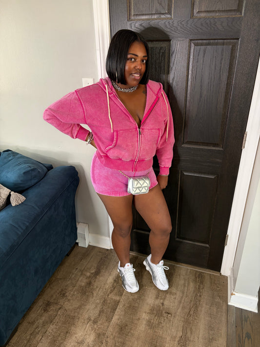 Hot Pink Hoodie Short Set