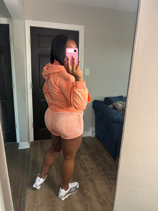 Coral Hoodie Short Set