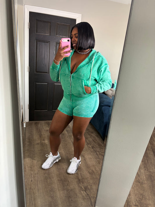 Green Hoodie Short Set