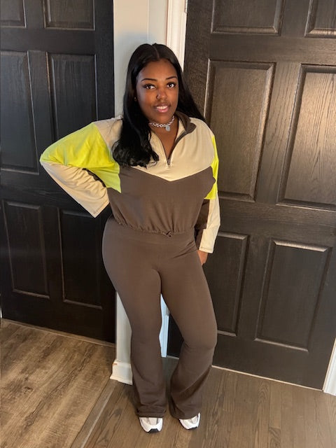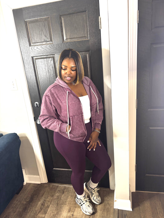 2 Piece Cropped Hoodie Zip Up Legging Set (Eggplant)