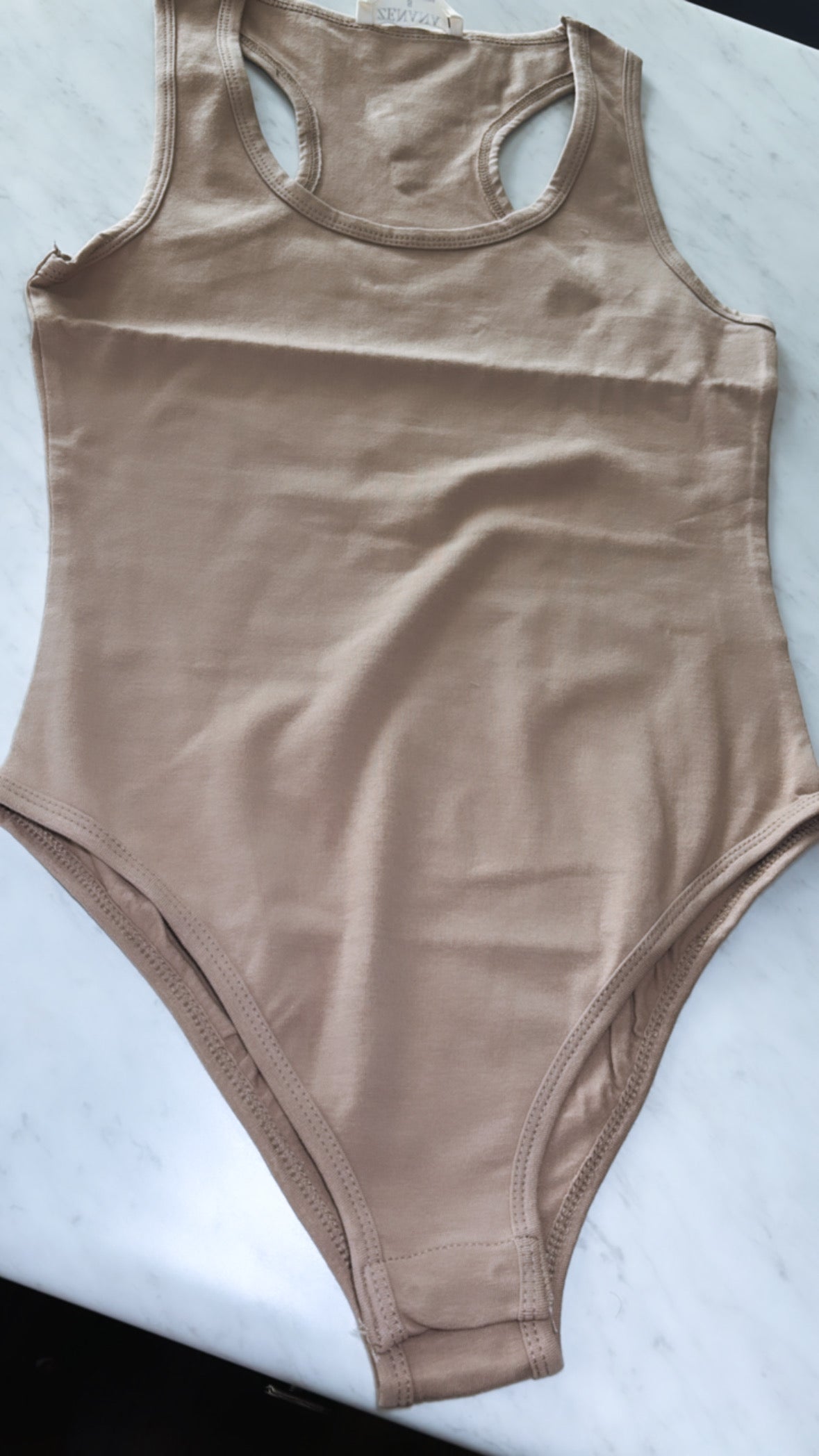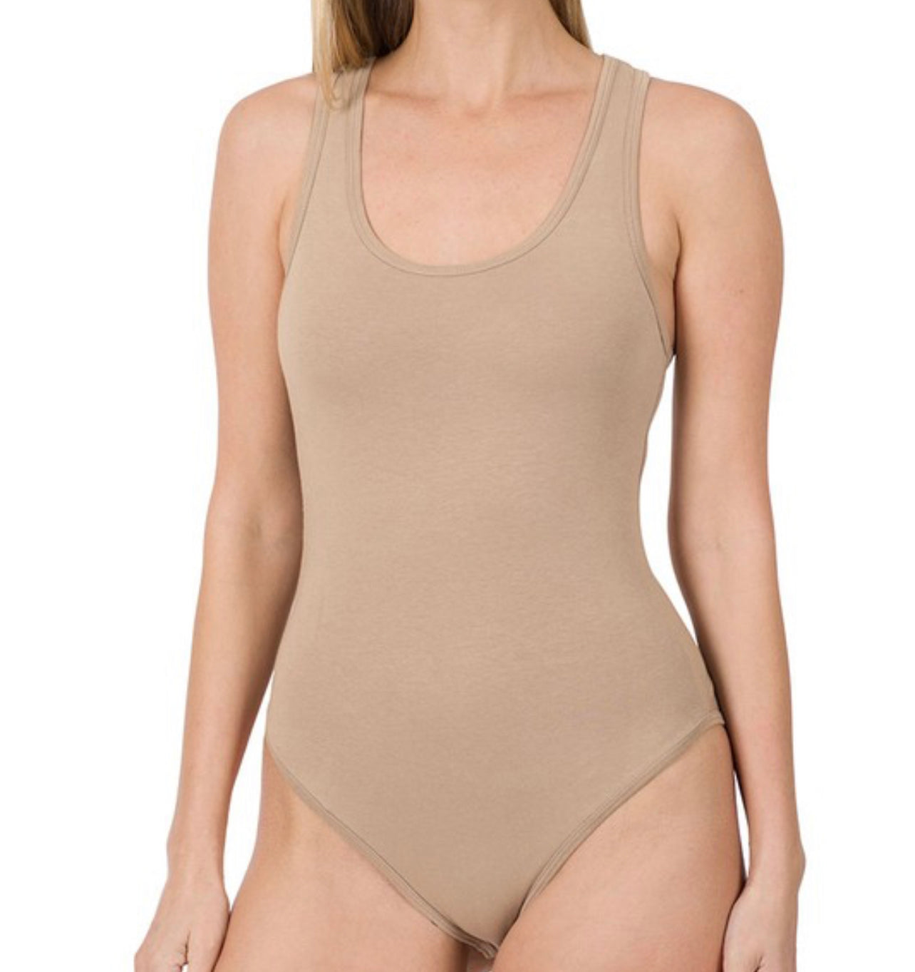 Amp up your style game with our Ash Mocha Cotton Racer Back Tank Bodysuit. Made with soft cotton, this bodysuit is perfect for comfortable layering. Its racer back design adds a touch of sporty chic, making it a versatile addition to your wardrobe. (Get ready to slay any outfit, effortlessly!)