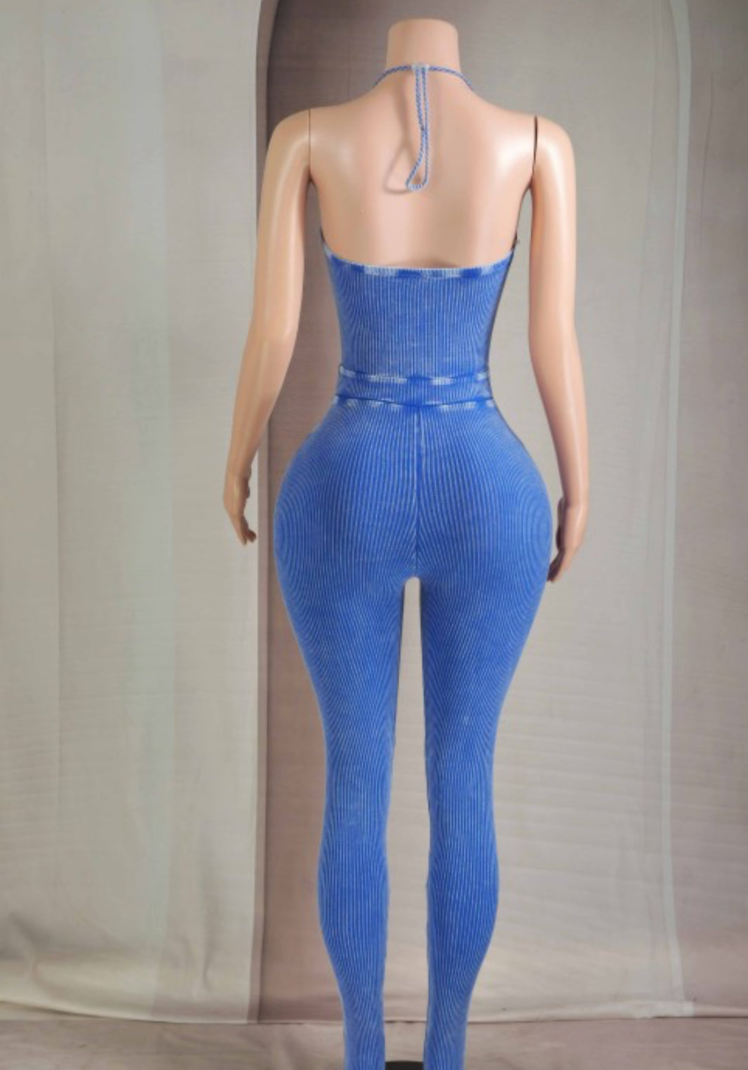 Our “Body Language” Ribbed Halter Jumpsuit hugs every curve just right and makes sure you walk in confidence—whether you’re running errands or turning heads at brunch. This stunning piece features a soft, ribbed stretch fabric in a bold electric blue, a halter neckline, and contour seams that sculpt your shape like a dream.