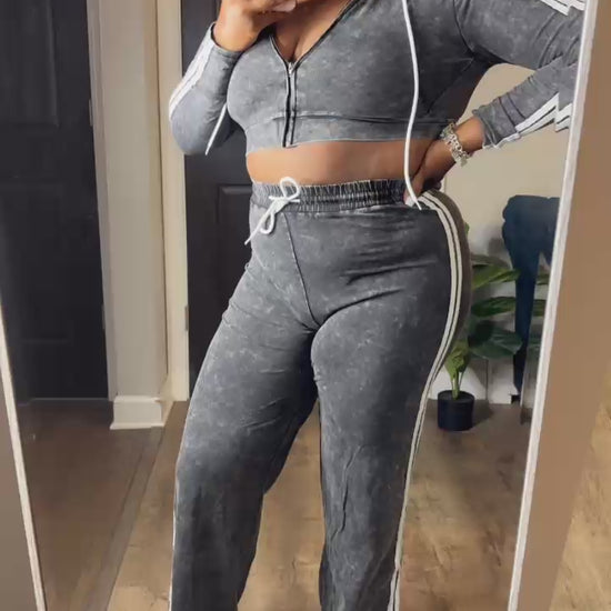 Step into effortless style and comfort with our Active Track Suit Pant and Jacket Set. Designed for the girl on the go, this 2-piece matching set features a sleek zip-up cropped hoodie jacket and drawstring wide-leg track pants with bold side stripe details. Whether you’re running errands, traveling, or meeting up with friends, this track set keeps you looking chic and feeling confident.