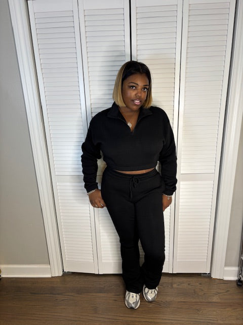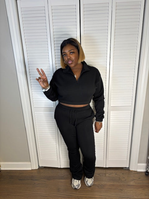 Get ready to slay in comfort and style with our Black Crop Zip Top & Jogger Set—your new go-to for casual chic vibes! Designed for the ultimate fit and versatility, this fleece set is perfect for lounging, running errands, or making a statement while on the move.