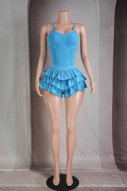 This ain’t your basic summer fit, sis—the “Hot Tropic Ruffle Romper is bringing all the sass, all the shape, and all the compliments. With a flirty ruffled bottom, body-hugging ribbed fabric, and a stretchy fit that moves with you, this romper is your go-to for stepping out cute without even trying.