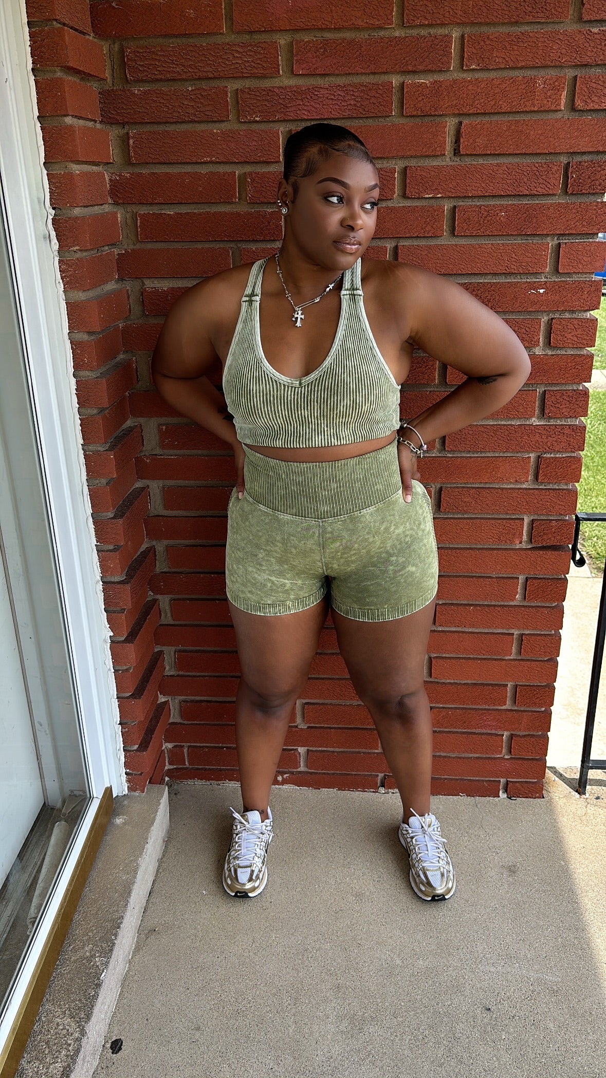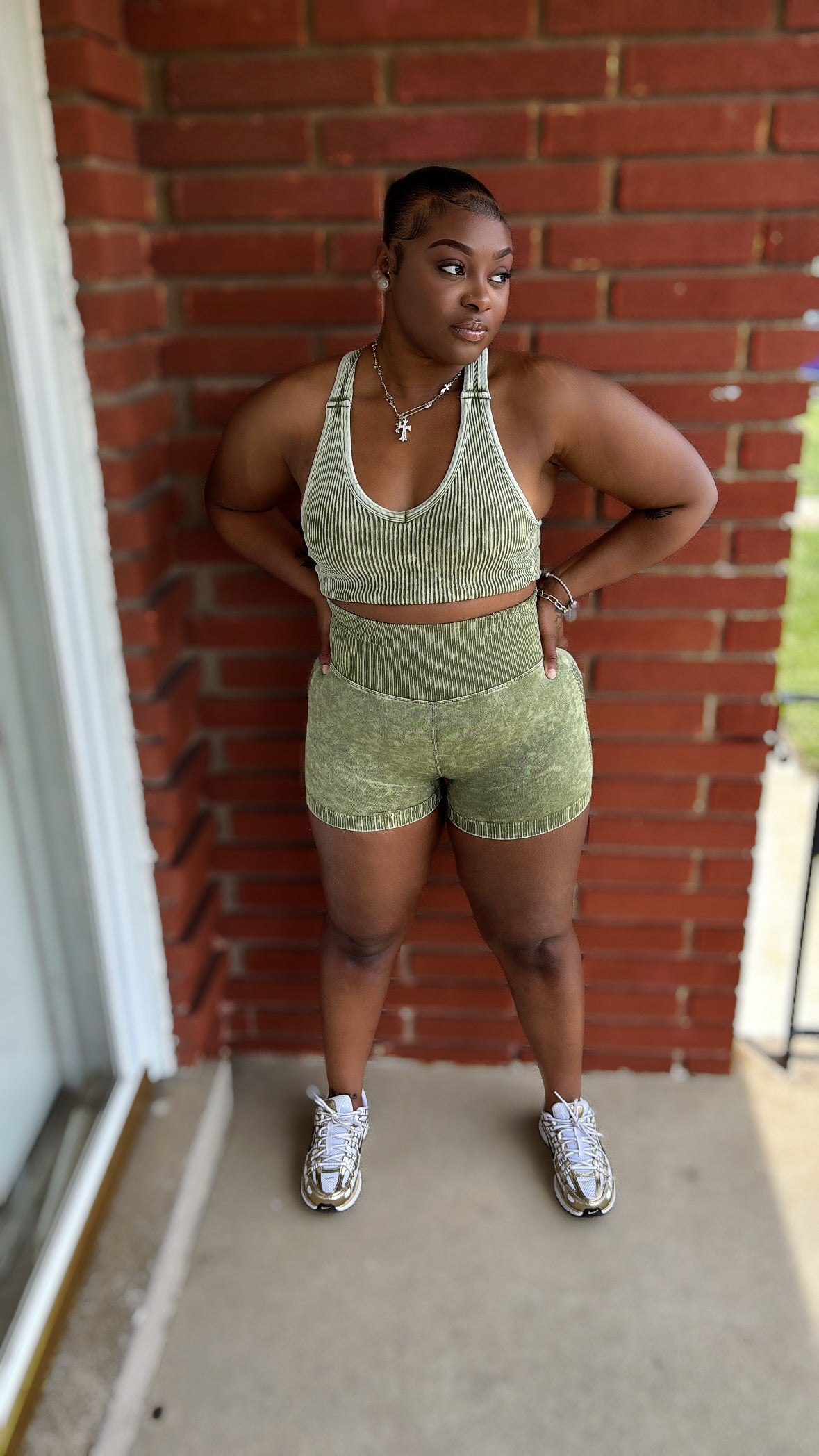 Get ready to move with the Olive Washed Short Set! This playful duo features a racerback tank top that keeps you cool and comfy, paired with seamless high-waisted shorts that hug your curves just right. Perfect for lounging or light workouts, this set blends style and ease effortlessly.