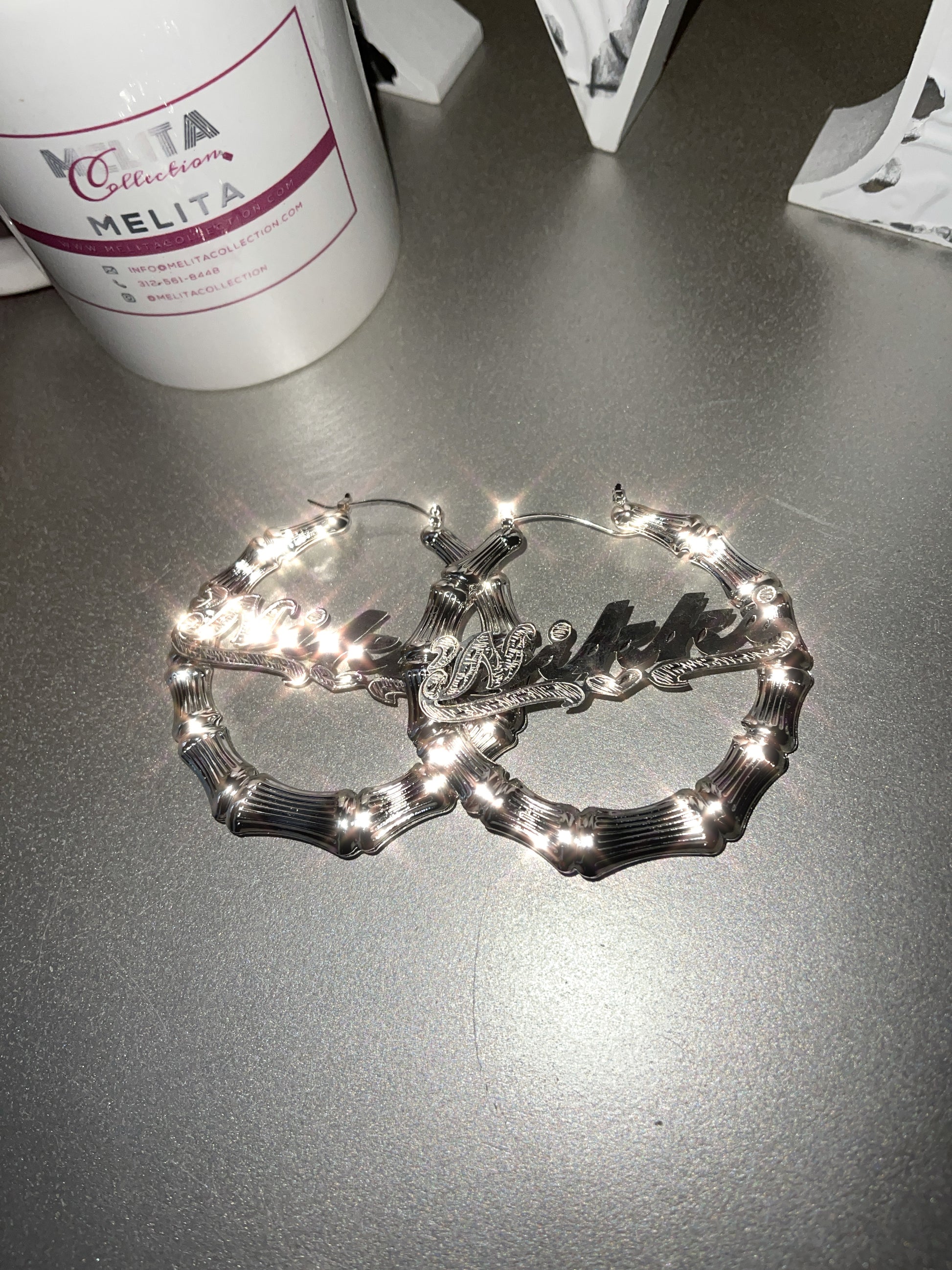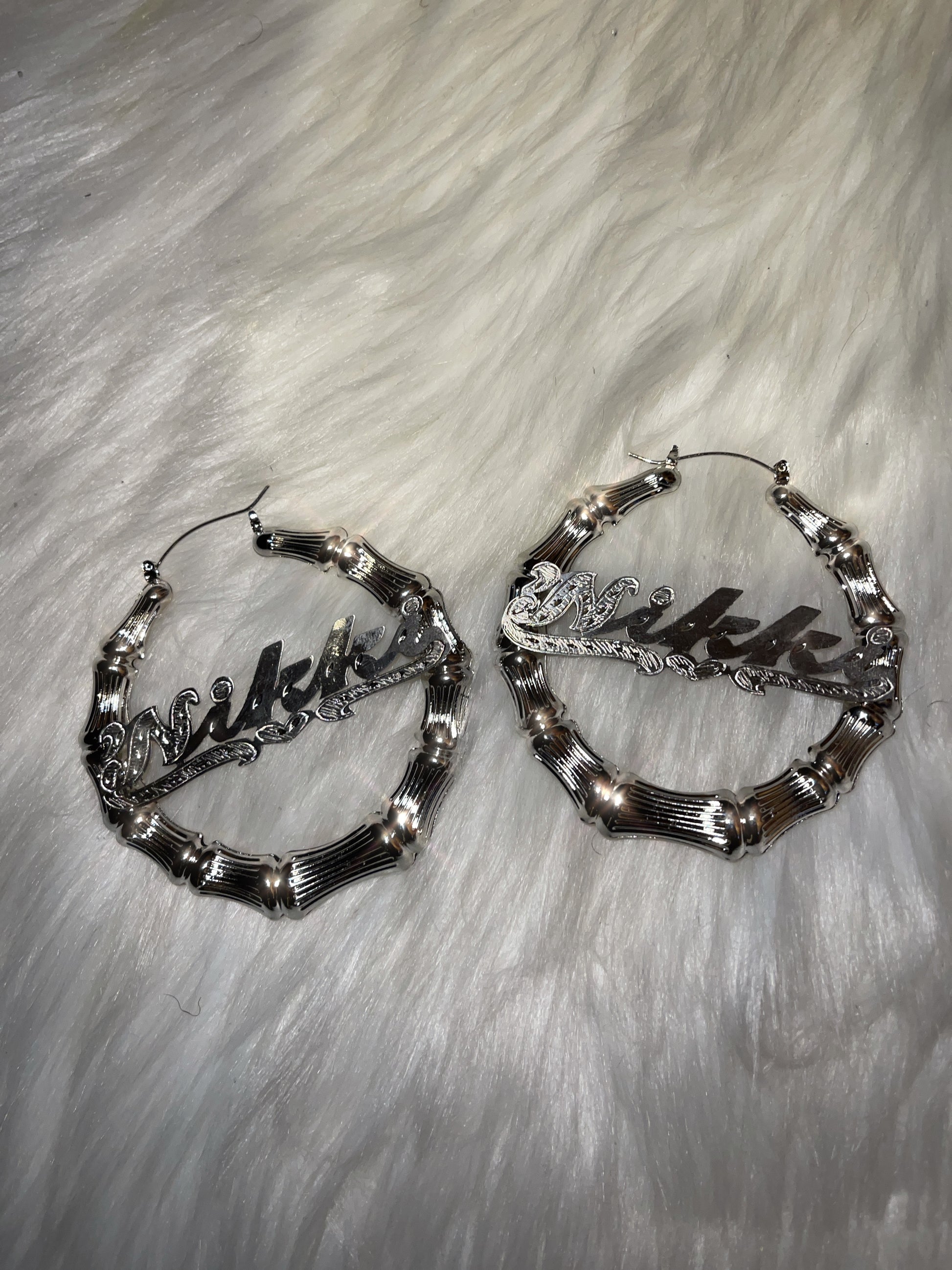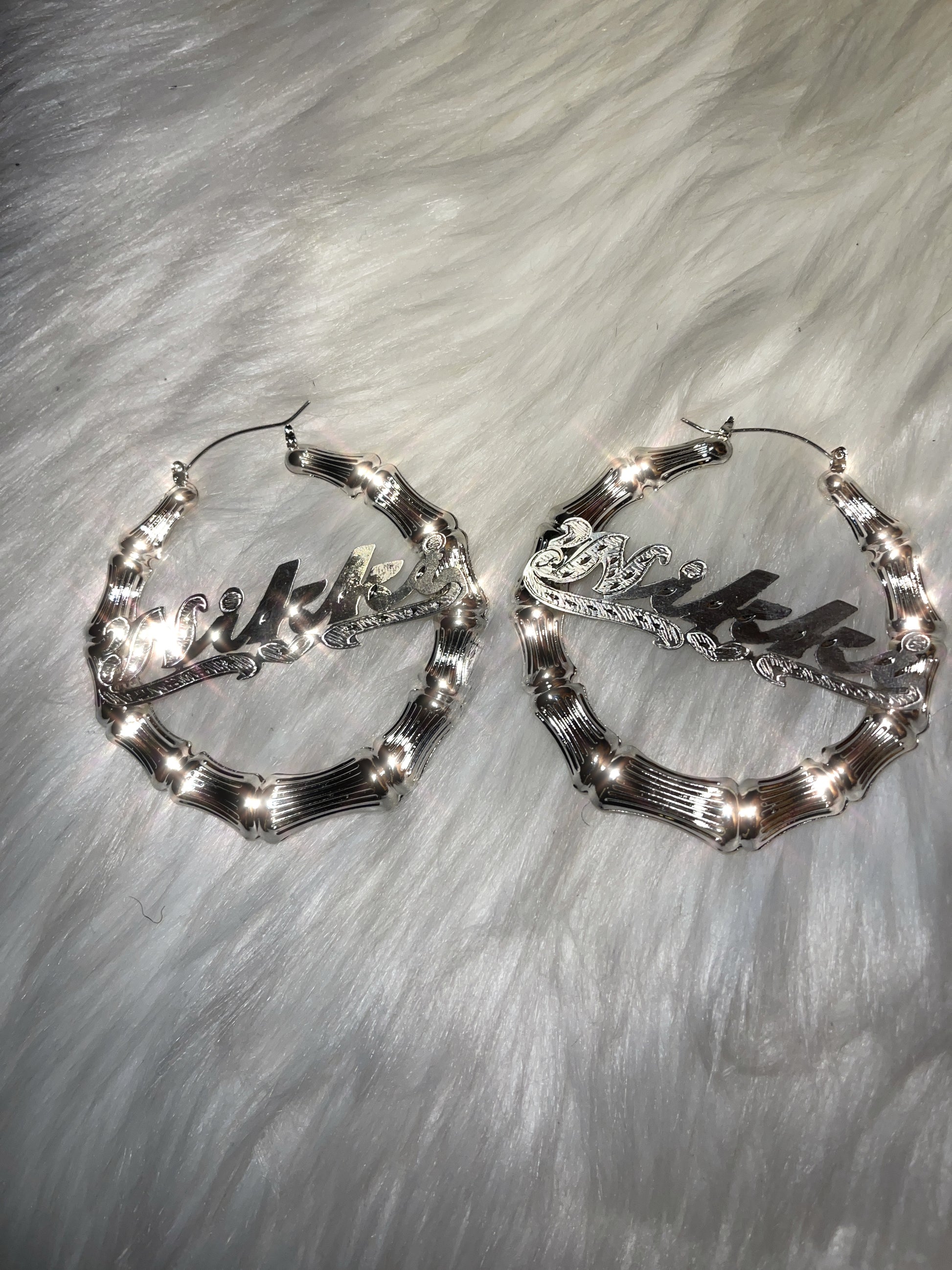 Bamboo Personalized Silver Name Earrings