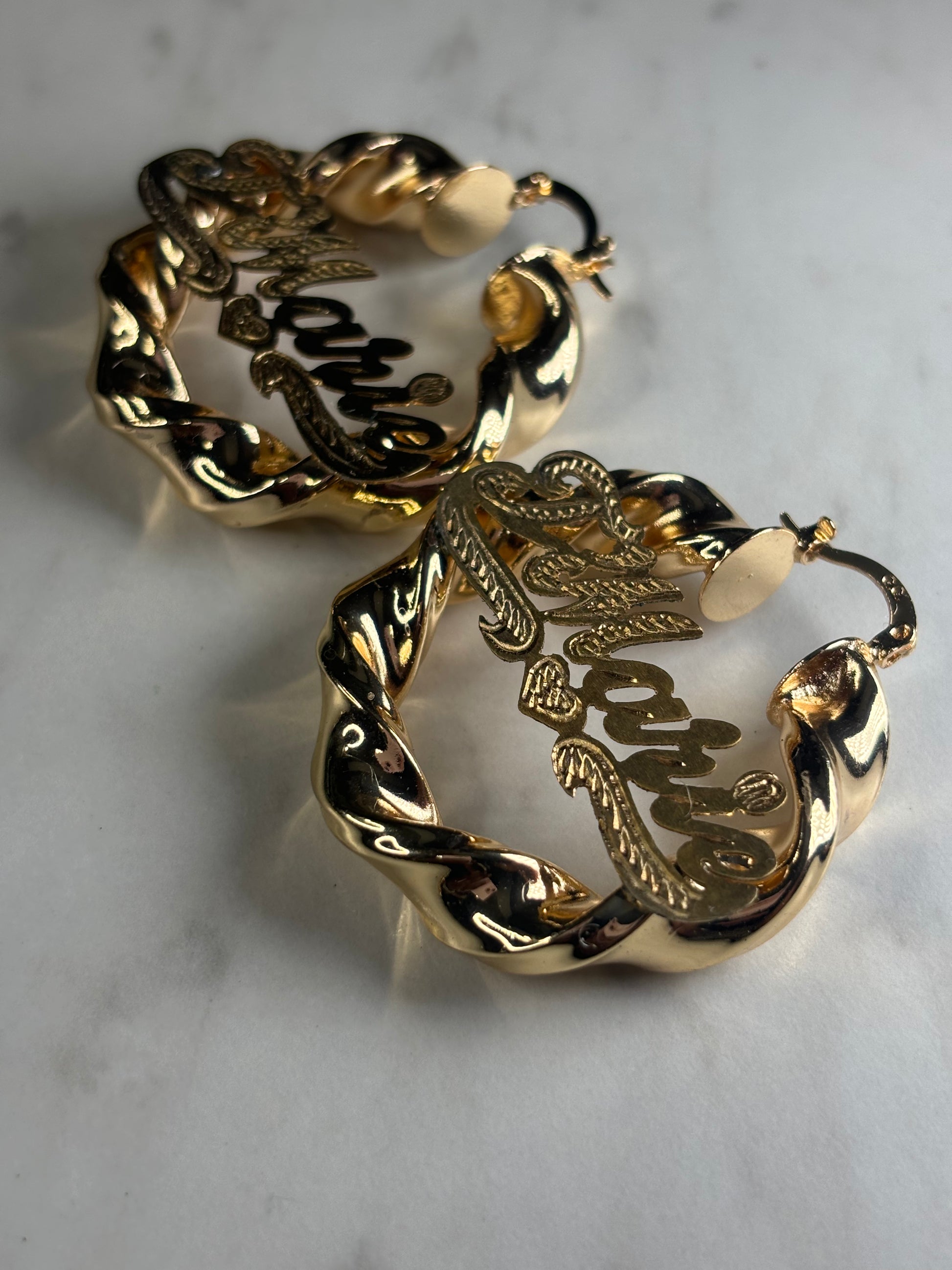 Fall in love with our Personalized Twist Name Earrings! These unique earrings feature your name beautifully twisted into a stunning design. Stand out from the crowd and add a personal touch to any outfit. The perfect gift for yourself or a loved one, these earrings are sure to make a statement.
